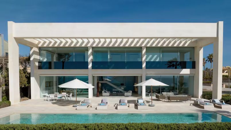 Desde el paseo marítimo adyacente, Villa Mar es fácilmente reconocible por su arquitectura elegante y contemporánea. Al entrar en la impresionante terraza, donde la piscina se funde a la perfección con el mar, los huéspedes pueden gozar de intimidad en un entorno sereno, al tiempo que disfrutan de un cómodo acceso a una encantadora cala cercana.