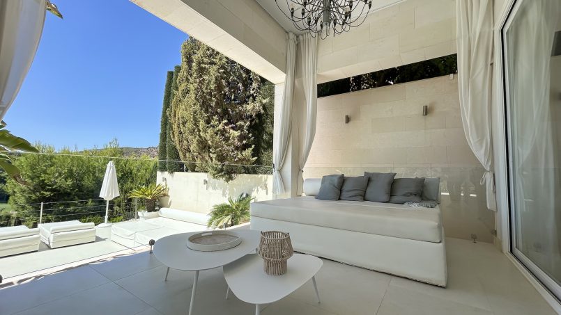 Construida con materiales de alta calidad, la villa destaca por su luminosidad y perfecta integración con su bello entorno.