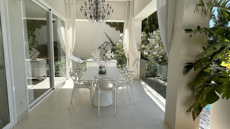 El espacio exterior es perfecto para el entretenimiento, y cuenta con: Dos mesas de comedor (para 10 personas cada una) Cuatro sofás, 10 tumbonas, una hamaca y colchonetas chillout Una mesa de ping-pong y una barbacoa de gas Weber (4 quemadores) Normas de la casa: La casa se alquila exclusivamente a familias. Sin fiestas ni ruidos fuertes que puedan molestar a los vecinos. Las zonas al aire libre no deben utilizarse después de las 23 h. Los alquileres sólo están disponibles de sábado a sábado. La piscina exterior no estará climatizada de noviembre a marzo.   Nombre de registro: Bendinat Número de licencia: VT/1587