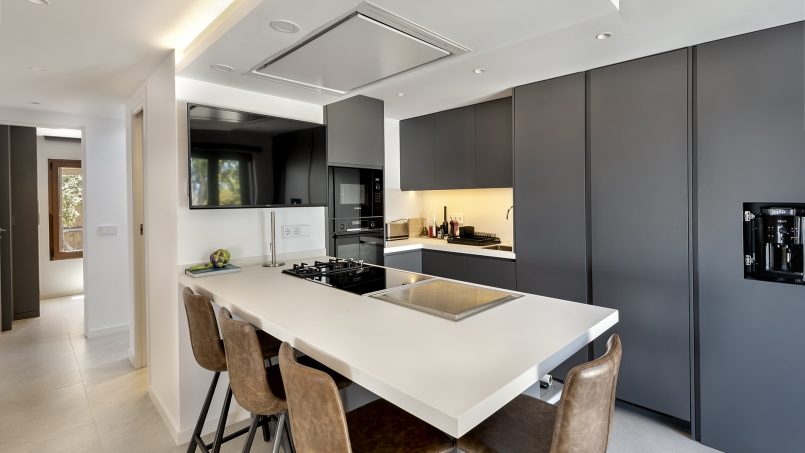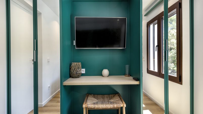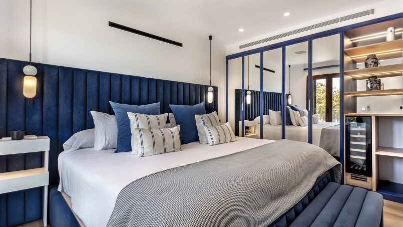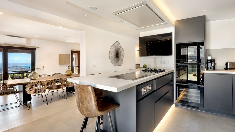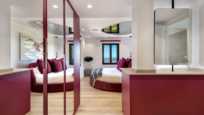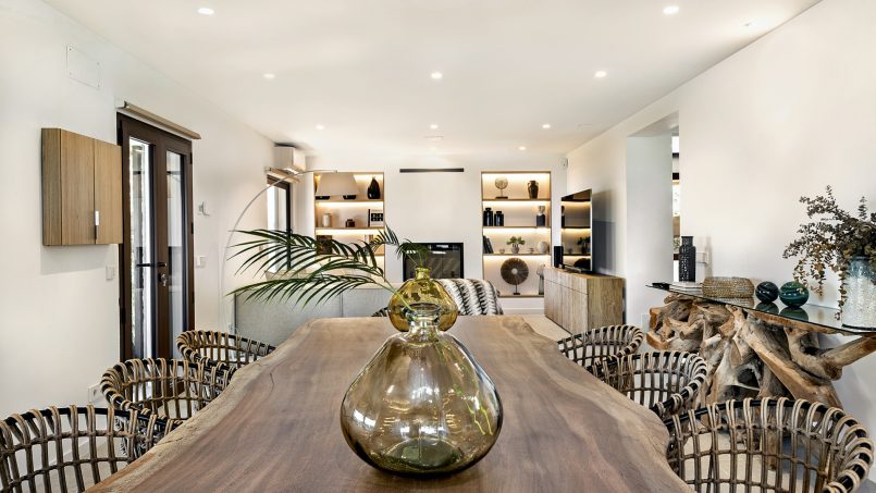 El interior de la villa está diseñado para quienes aprecian la paz de la naturaleza sin renunciar al lujo. Presenta elegantes muebles de madera que realzan el atractivo estético, y tanto los dormitorios como las zonas comunes ofrecen las mismas impresionantes vistas que el exterior, creando una conexión perfecta con el entorno natural. El quinto dormitorio sirve actualmente como estudio de trabajo, pero incluye un sofá cama que puede convertirse fácilmente en cama doble, lo que proporciona flexibilidad a los huéspedes.