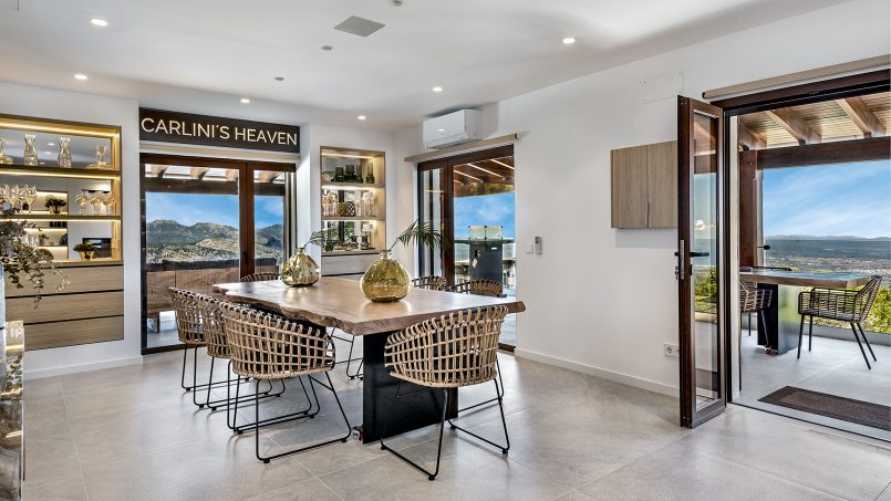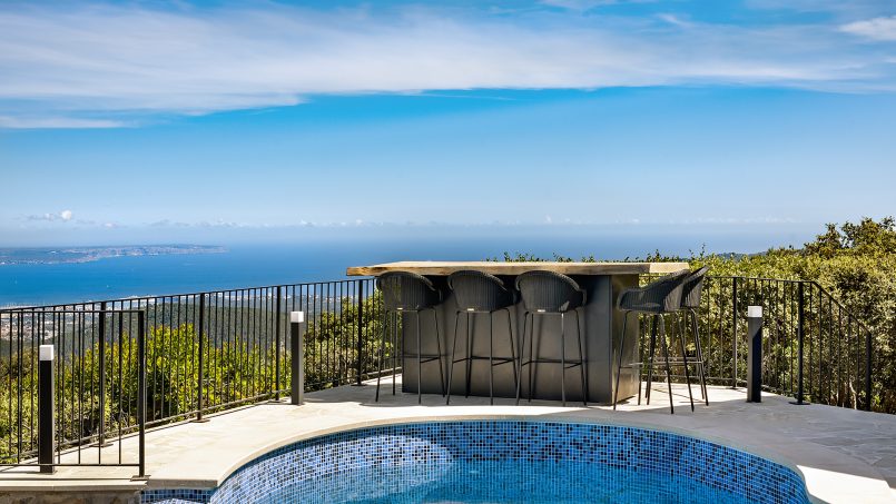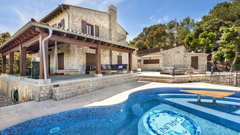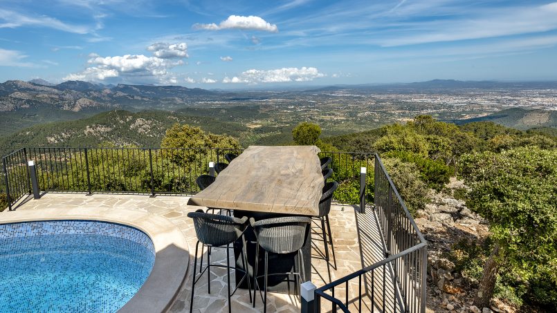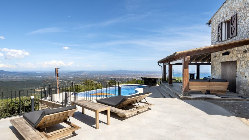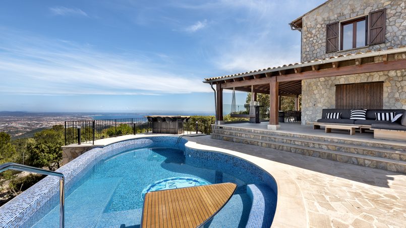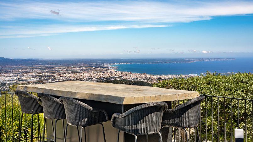 Enclavada en lo alto de una pintoresca colina, esta lujosa villa de vacaciones en Mallorca desprende el encanto tradicional mallorquín con su exterior revestido de piedra, al tiempo que ofrece todas las comodidades modernas en su interior. La villa goza de una de las mejores vistas de la ciudad de Palma y su magnífica bahía, lo que la convierte en un refugio perfecto para quienes buscan belleza y tranquilidad.