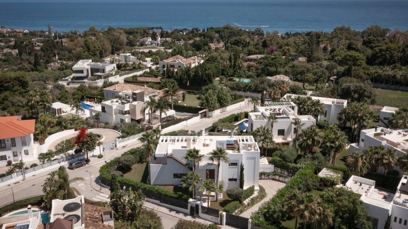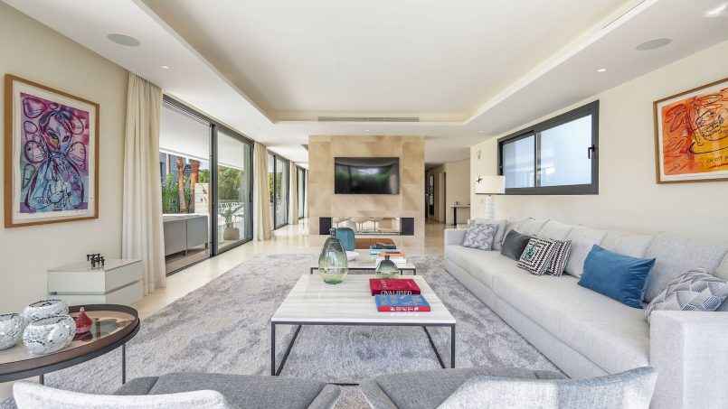 La Villa está situada en la urbanización cerrada de Altos de Puente Romano. Situada por encima de la costa, está a poca distancia del Hotel y Complejo Puente Romano y, de hecho, goza de una de las direcciones más acomodadas de Marbella. No sólo es un complejo exclusivo, sino que está cerca de las playas de la Milla de Oro, a un corto trayecto en coche tanto de Puerto Banús como del casco antiguo de Marbella.