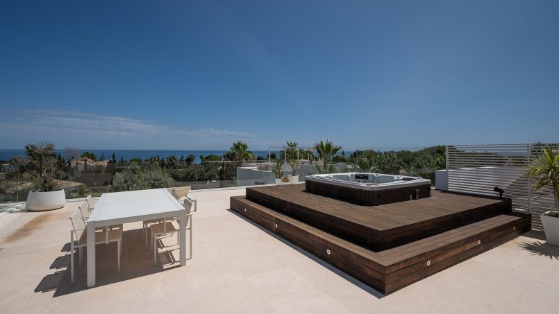 Experimenta el epítome de la indulgencia en un moderno y sorprendente hogar fuera de casa, que no sólo está a poca distancia del complejo Puente Romano, sino que te cautivará con sus impresionantes vistas al mar. Elaborada con meticulosa atención al detalle, esta villa muestra los más altos estándares de construcción, utilizando materiales de primera calidad en toda su construcción.