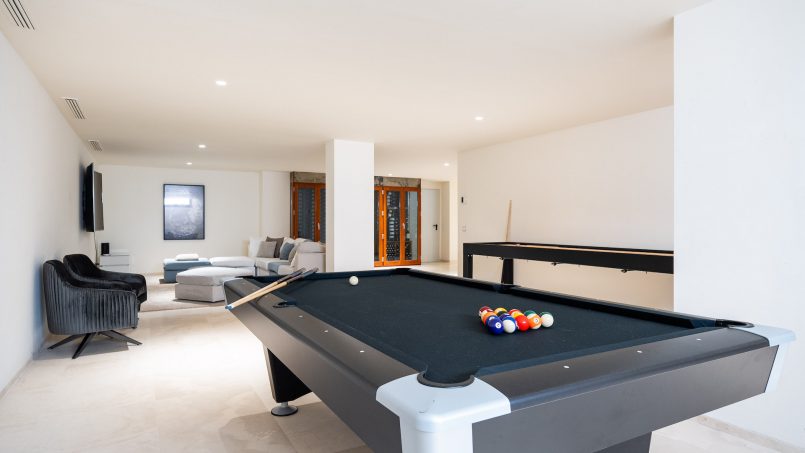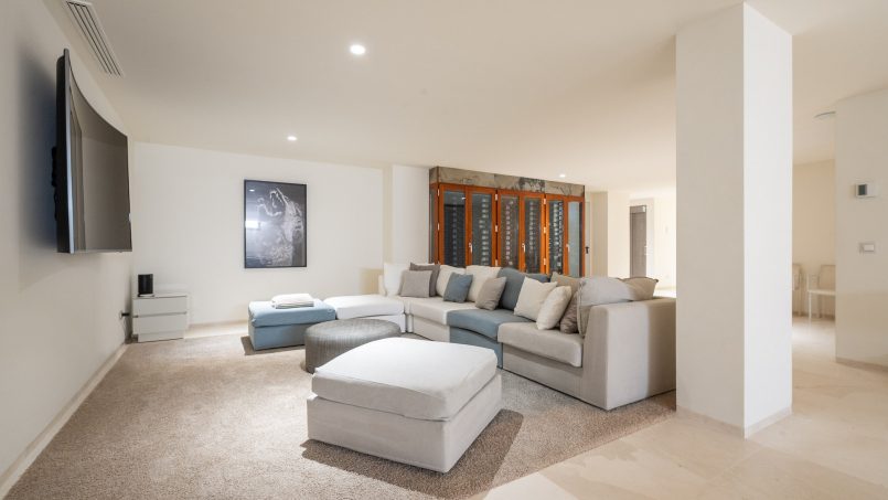 Con 6 dormitorios en suite, la propiedad se extiende en tres niveles, incluido un sótano con amplio espacio para 2-3 coches en el garaje. En La Villa encontrarás una abundancia de espacio habitable, hecho aún más especial por una extraordinaria terraza solarium en la azotea. Accesible a través de una escalera exterior o un ascensor que da servicio a todos los niveles de la casa, el solárium proporciona un refugio tranquilo con vistas panorámicas. La propiedad ofrece una serie de servicios excepcionales, como una sala de cine/juegos, una bodega bien equipada, una piscina privada, una zona de barbacoa al aire libre y un relajante jacuzzi. ¿Hay algo mejor que esto para unas vacaciones en Marbella?