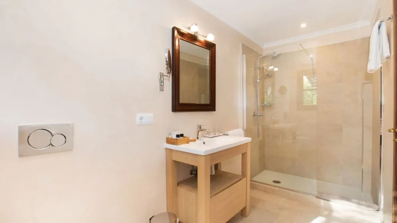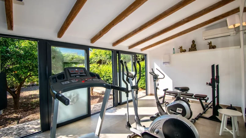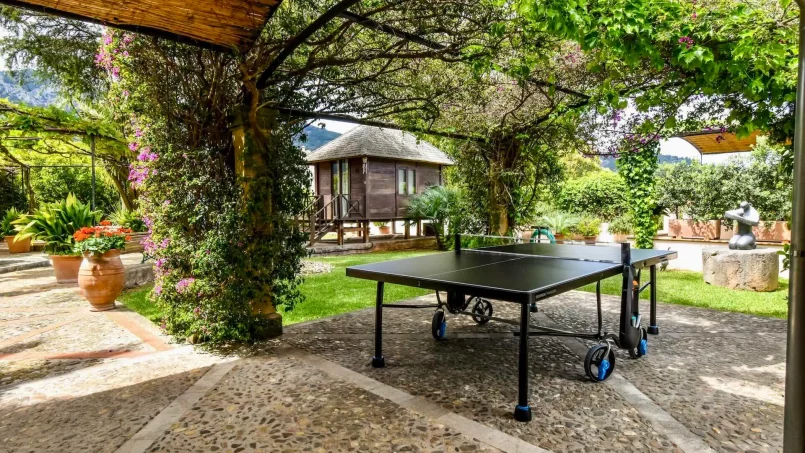 Villa Serenitat equilibra a la perfección el confort con una refinada elegancia, lo que la convierte en una opción ideal para familias numerosas o grupos. Los amantes de las actividades al aire libre pueden disfrutar de los hermosos jardines, una tentadora piscina y una zona de estar amueblada con estilo. Un pabellón junto a la piscina y un bar equipado con barbacoa ofrecen un marco perfecto para comer al aire libre con el impresionante paisaje de Mallorca como telón de fondo. Una característica destacada es la encantadora casa spa de madera, un oasis de relajación escondido en los exuberantes jardines, que ofrece una escapada serena para tratamientos de bienestar. Entre los servicios adicionales se incluyen un gimnasio y un almacén seguro para bicicletas con herramientas de mantenimiento.