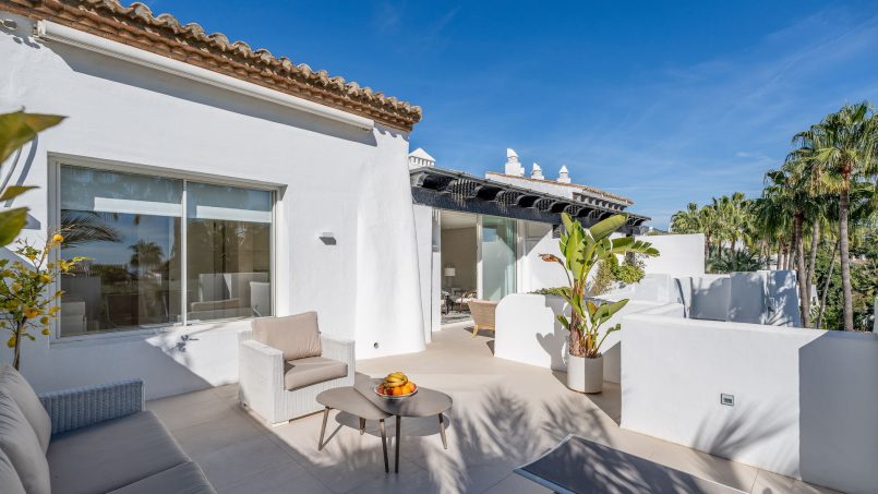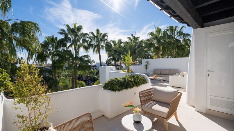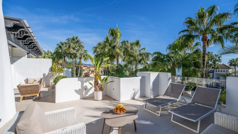Welcome to your new home from home in Marbella’s Puente Romano Resort. Here, you have everything: The perfect base to enjoy the lifestyle of the Golden Mile. Drago 32 is a stunning duplex penthouse, a stone’s throw from the beach and opposite the Puente Romano tennis club, with all of the resort’s amenities on your doorstep. You almost get your own private viewing box here for matches, as one of the bedrooms actually has views onto the court. We think that is Ace!